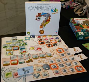 « Concept Kids Animaux, une version coopérative du jeu Concept adaptée aux enfants qui ne savent pas encore lire, où il vous faut faire deviner des animaux à l’aide des symboles. Chacun à leur tour, les enfants tentent de faire deviner un animal en posant des pions sur les icônes illustrées du plateau de jeu. Par ce moyen, l’enfant indique une caractéristique de l’animal à trouver. Concept Kids Animaux propose 110 animaux à deviner répartis en deux niveaux de difficulté. »